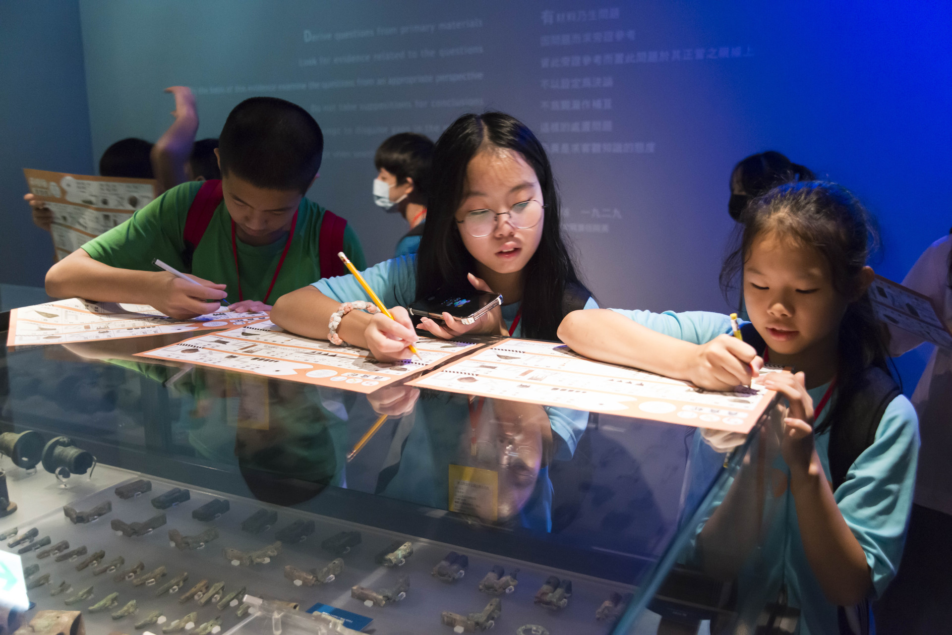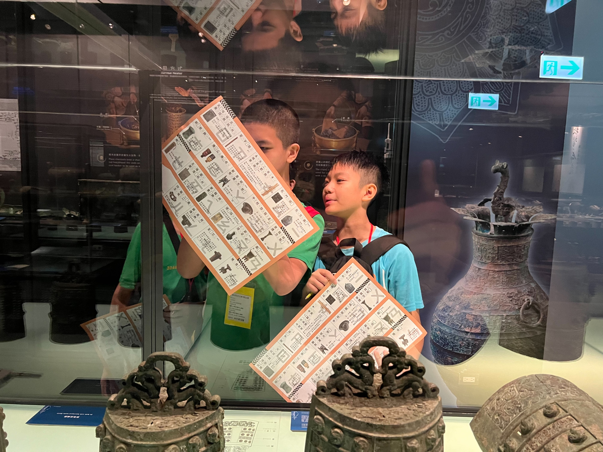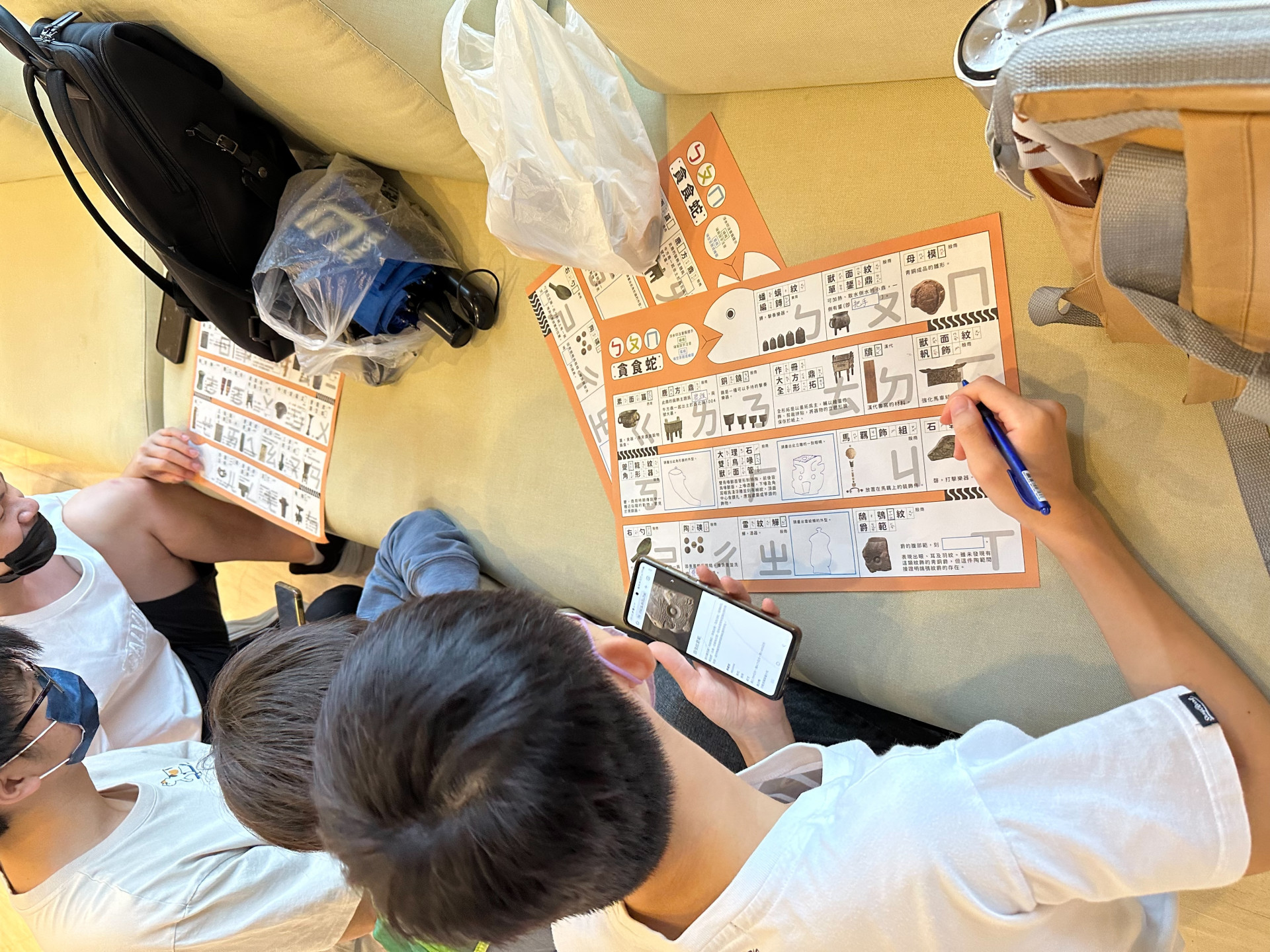 2. 「ㄅㄆㄇ貪食蛇」的綠框注音填空及藍框文物填空,完成後由工作人員蓋章認證。